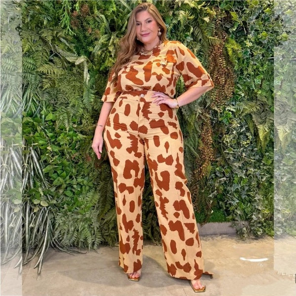 Conjunto Plus Size Calça Camisa Tricot. Prepare-se para arrasar com nosso deslumbrante conjunto! Confeccionado com o luxuoso viscolinho de alta qualidade, este conjunto é um verdadeiro exemplo de estilo e conforto. A camisa, com um charmoso comprimento cropped, apresenta uma modelagem soltinha que abraça suas curvas com delicadeza. As mangas curtas e a gola colarinho adicionam um toque clássico e elegante, enquanto o abotoamento frontal e os bolsos falsos trazem um toque de sofisticação e praticidade. Os detalhes de tricot delicadamente posicionados acima do busto e nas mangas elevam o visual, proporcionando um acabamento refinado e moderno. A calça, com sua modelagem reta e cintura alta, é o complemento perfeito para este conjunto deslumbrante. Forrada para garantir o máximo de conforto, apresenta um fechamento frontal por botão e zíper, além de cós com passantes aplicados para um ajuste perfeito. Os recortes frontais estratégicos adicionam um toque de charme e estilo, destacando sua silhueta de forma elegante e sofisticada. Seja para uma ocasião especial ou para um dia casual, este conjunto é a escolha ideal para mulheres que buscam estilo e conforto sem abrir mão da sofisticação. Garanta já o seu e sinta-se confiante e deslumbrante em qualquer momento!